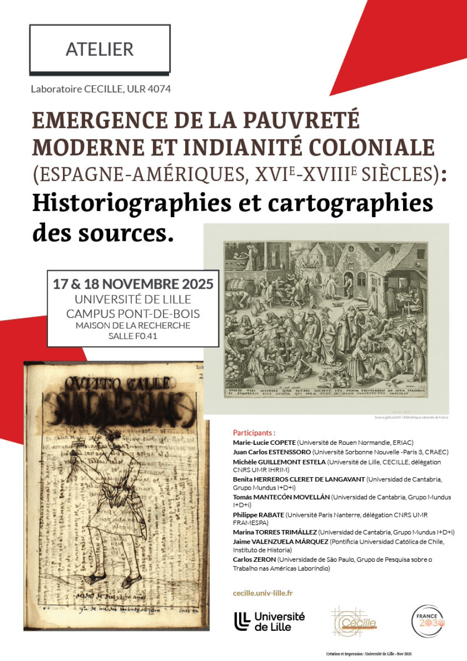 Los profesores Tomás A. Mantecón Movellán, Benita Herreros Claret de Langavant y Martina Torres Trimállez participarán los próximos días 17 y 18 de noviembre en el taller Emergence de la pauvreté moderne et indianité coloniale (Espagne-Amériques, XVIe-XVIIIe Siècles): Historiographies et cartographies des sources, organizado por la Universidad de Lille.